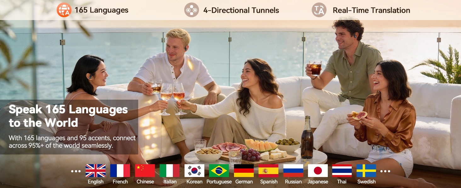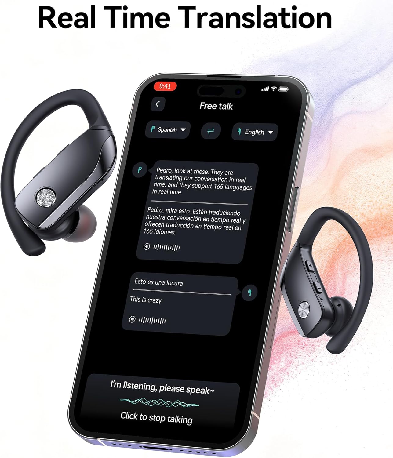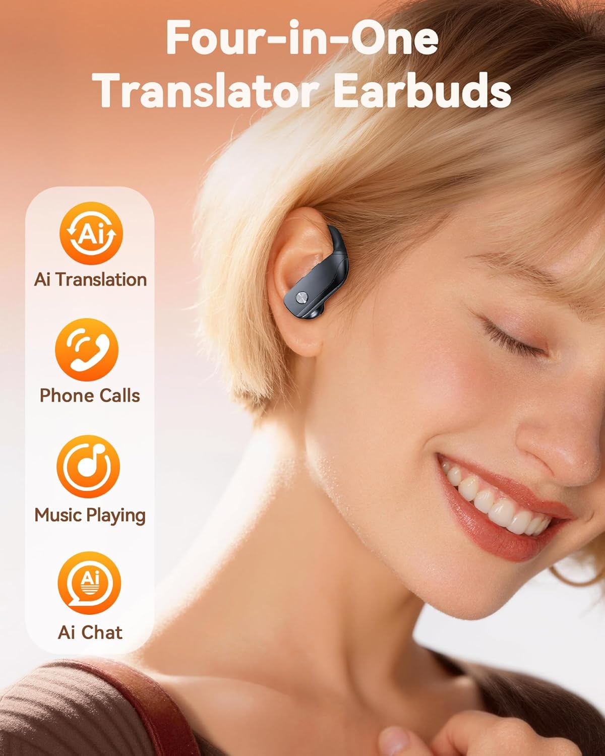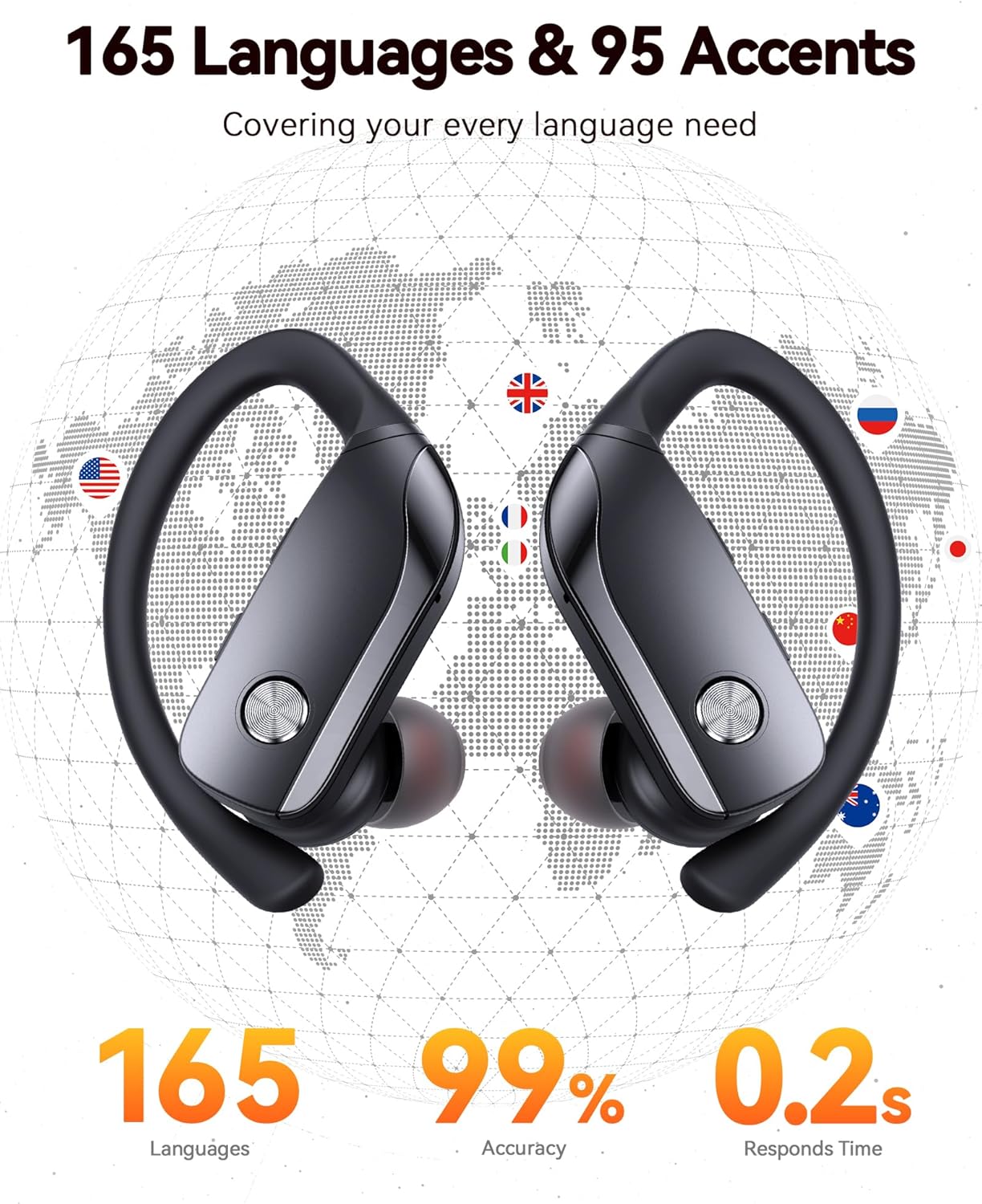 - AI Real Time Translation Earbuds in 165 Languages: These translator earbuds are powered by three leading AI models, supporting 165 languages across 95% of global regions with 95 localized accents, delivering a 0.2s response and over 98% translation accuracy for low-latency, high-precision real-time translation. Translating earbuds real time ensures confident and effortless communication in any scenario, from business calls and online conferences to study sessions and casual conversations.